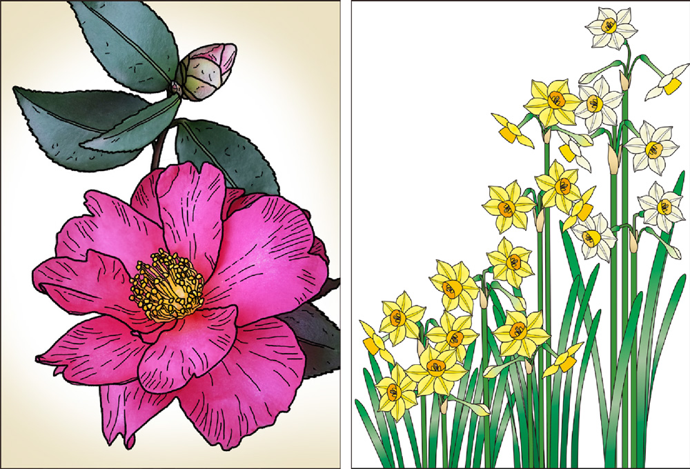 塗り絵でも定番の人気素材なので、お好きな色で華やかに彩ってみませんか?