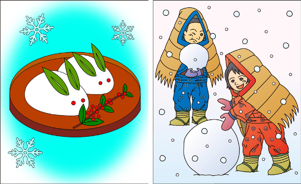 この季節ならではの「雪」をテーマにした塗り絵も人気です。