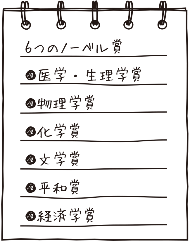 ノーベル賞は、物理学賞や化学賞・平和賞など6つですが、皆さんが受賞するとしたらどんな賞ですか?自由に賞を作ってみましょう。